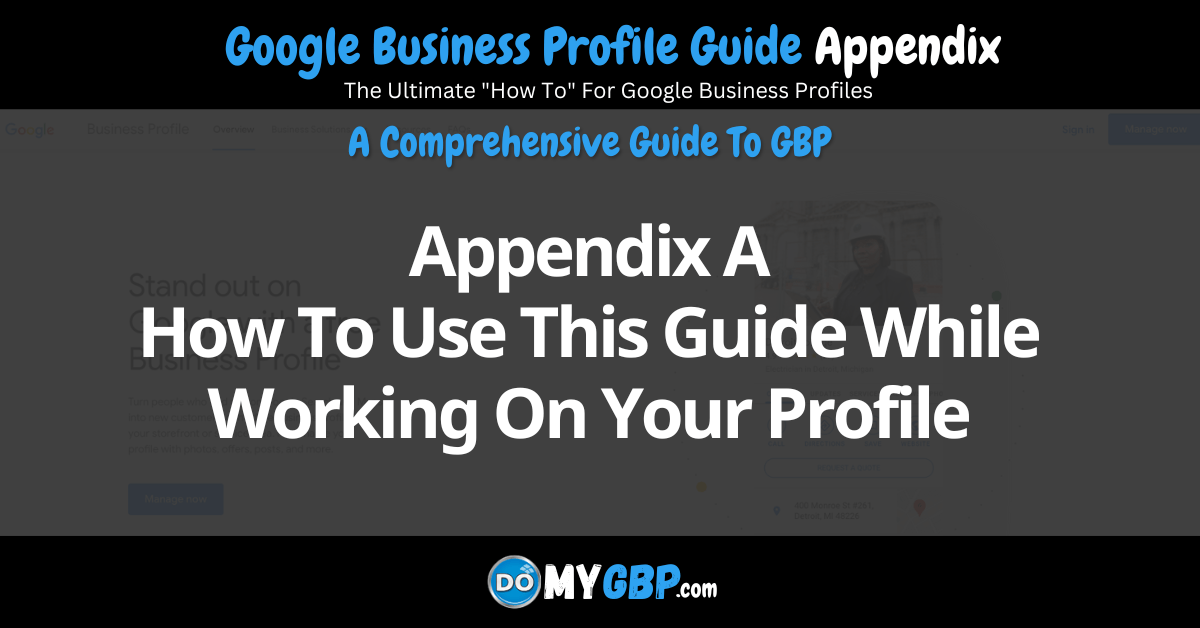 Google Business Profile Guide Appendix A How To Use This Guide While Working On Your Profile DoMyGBPBy eric@docorporate.com / June 26, 2023