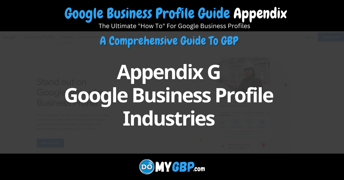 Google Business Profile Guide Appendix G Google Business Profile IndustriesBy eric@docorporate.com / June 26, 2023
