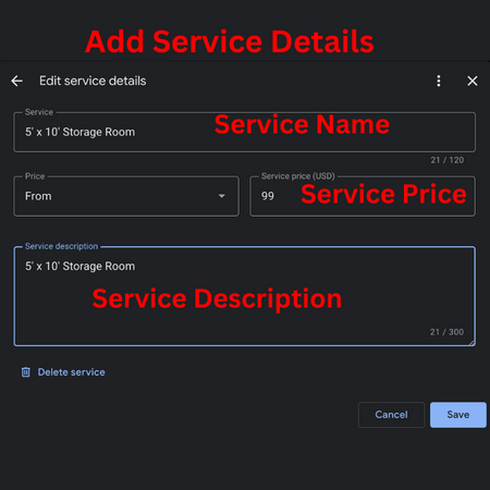Add Service Details Desktop